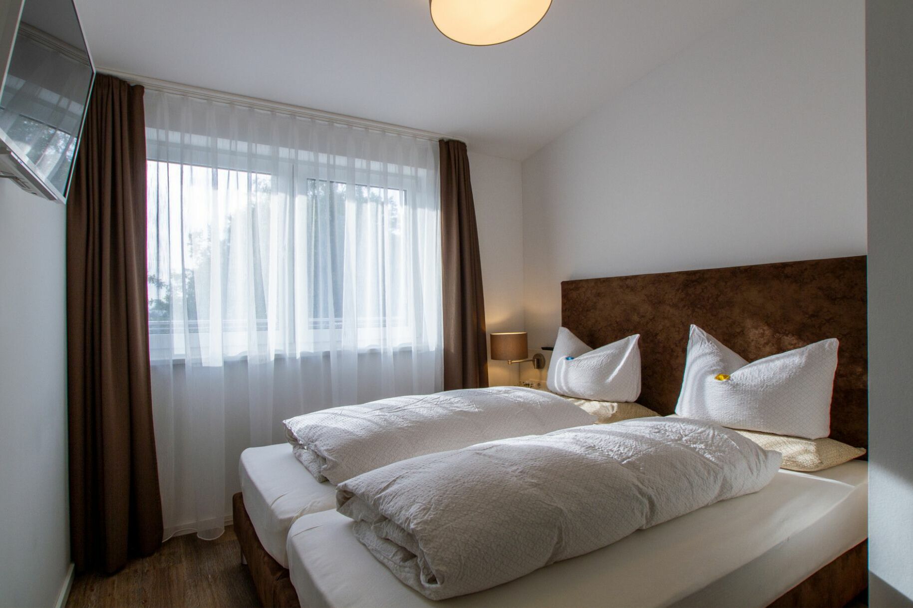 Zur Ausstattung gehören Bettwäsche, Handtücher, Kühlschrank, teilweise Mikrowelle, Cerankochfeld, Geschirrspüler (nicht im 1-Raum-Appartement), Nespresso-Kapsel-Kaffeemaschine, Wasserkocher, Toaster sowie Dusche/WC, Haartrockner, Flachbild-TV im Wohn- und Schlafbereich, begehbarer Kleiderschrank (in den Komfort-Appartements).